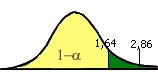 El estadístico de contraste presenta un valor de 2,86, que en la distribución normal está más a la derecha que el valor crítico de 0,95 que ves que es 1,64, luego el estadístico se sitúa en la zona de rechazo.
