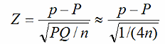 Si deseamos efectuar un contraste de hipótesis sobre la proporción, según la teoría, si np>5 se puede usar la distribución binomial, que desemboca en normal para muestras grandes.