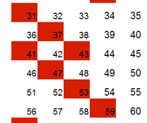 Para números impares surgen escaleras (números primos en sucesión aritmética de diferencia igual al número de columnas más o menos una unidad). Se pueden buscar escaleras con el máximo de tramos posible, como la de la figura: