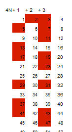 En primer lugar observa que las columnas que contienen primos son precisamente estas: 4n+1 y 4n+3