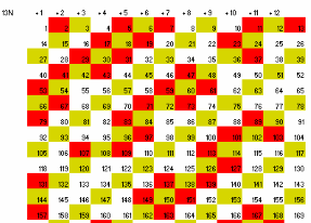 Experimenta con otros números de columnas N y observa los múltiplos de N+1 o de N-1. Prueba también con los múltiplos de los divisores de esos dos números. En algunos caso obtendrás enrejados muy tupidos