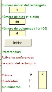 Las preferencias se fijan activando los distintos tipos de números que se deseen estudiar: primos, cuadrados, múltiplos, etc.