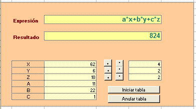 La Calculadora de expresiones algebraicas permite definir seis variables en la misma hoja, para estudiar los valores y cambios de una expresión algebraica. Permite construir también tablas y gráfica. Su ventaja radica en que basta escribir la expresión en una celda para que se evalúe inmediatamente respecto a las variables. Permite cambiar progresivamente los valores de las variables para poder construir con ellos tablas y gráficos.