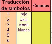Símbolos: Escribe los colores como quieras: verde, azul, rojo, blanco, por ejemplo.