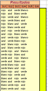 Arranca la máquina de combinar, dale todos los datos y criterios y pulsa el botón Máquina. Resulta una solución de 24 formas de ordenar los colores En la imagen puedes ver el desarrollo completo ¿Ha coincidido con tu planteo? Si no es así, revisa tu planteo y los criterios que le has dado a la máquina. |
