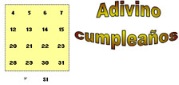 Es una adivinación clásica obtenida mediante tarjetas de números, en las que hay que marcar aquellas que contienen la fecha a adivinar. Se basa en la expresión en sistema binario de ese número.