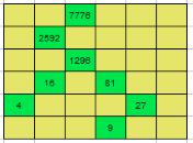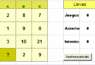 Es un pasatiempo fácil, pero que hace pensar y a veces se complica. Consiste en descubrir la pauta de cálculo que siguen las cuatro filas de una tabla numérica y aplicarla a encontrar el valor adecuado que ha de tener la celda que contiene la interrogación.
