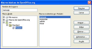 Herramientas > Macros > Organizar macros > OpenOffice.org Basic.