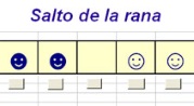 Adaptación a hojas de cálculo del juego del Salto de la rana, que por limitaciones de las hojas de cálculo, se sustituye aquí por caras blancas y negras.