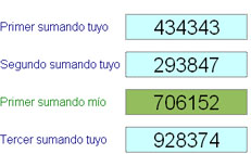 Esta adivinanza es muy simple y antigua. Al autor de la página se la enseñó su abuelo. Consiste en adivinar el resultado de una suma cuyos datos los escriben alternativamente dos personas.