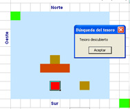 Este juego es una simplificación de los conocidos Buscaminas o el Juego de los Barquitos. Propone la búsqueda de un tesoro en un espacio cuadriculado, dado pistas que facilitan la percepción espacial. Contiene cuatro modalidades.